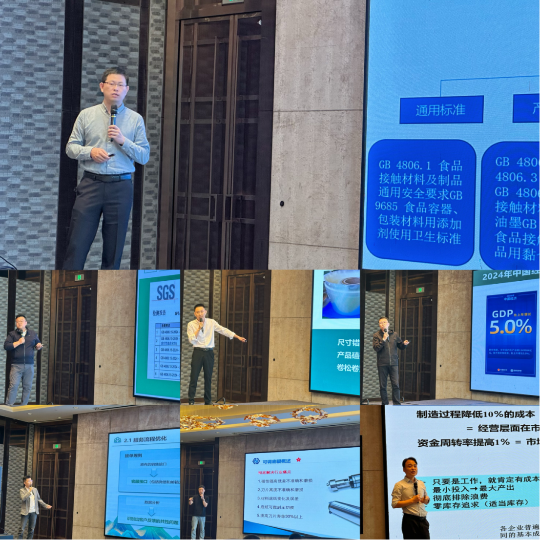 在主題演講環節,浙江冠豪技術營銷服務團隊全方位展示了從項目標簽材料解決方案到多場景痛點解析與解決方案的卓越實力,深入解讀新政策下的安全環保型壓敏膠,并結合日化、醫藥等領域的實際案例,呈現了“技術+服務”雙驅動的市場競爭力。同時,外部專家圍繞“圓刀模切工藝的解決方案及常見問題應對策略”和“管理水平提升與精益改善”兩大主題發表演講,為經銷商提供了寶貴的指導和建議。